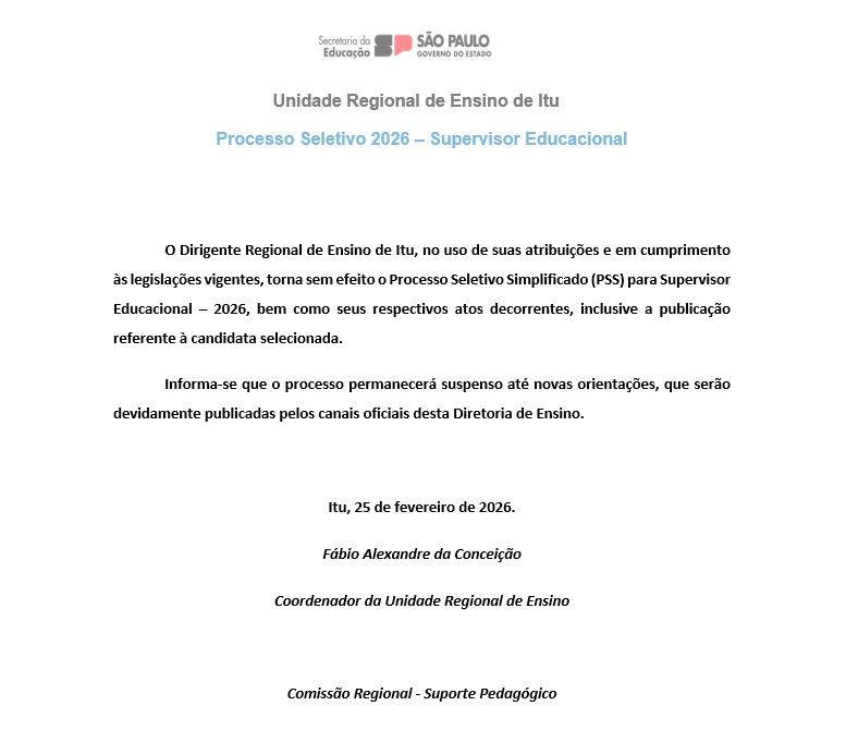 25-02-2026#Processo Seletivo 2026 – Supervisor Educacional